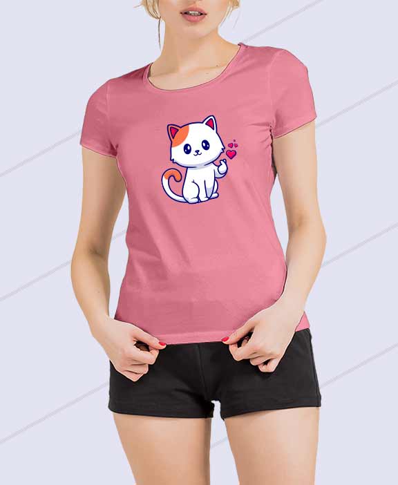Cat With Heart T-Shirt for Woman Pink